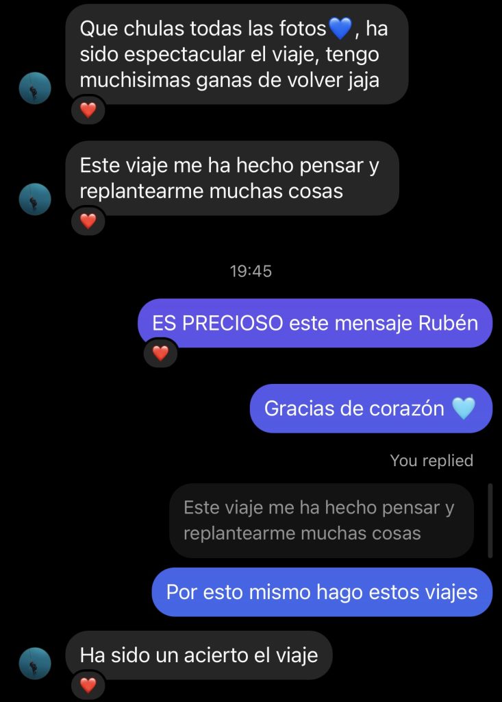 Muchísimas gracias a ti Edu por la confianza y por arriesgarte a vivir esta experiencia. Has sido un componente esencial para que este viaje haya salido tan ameno y divertido. Un avrazo de corazón 🩵Publicado en MARTA GARCÍATrustindex verifica que la fuente original de la reseña sea Google. He estado en el mes de Agosto con un grupo de 9 personas, Haya es quien lo organiza. Un 10 para la guía!! La recomiendo de todo corazón 🙂